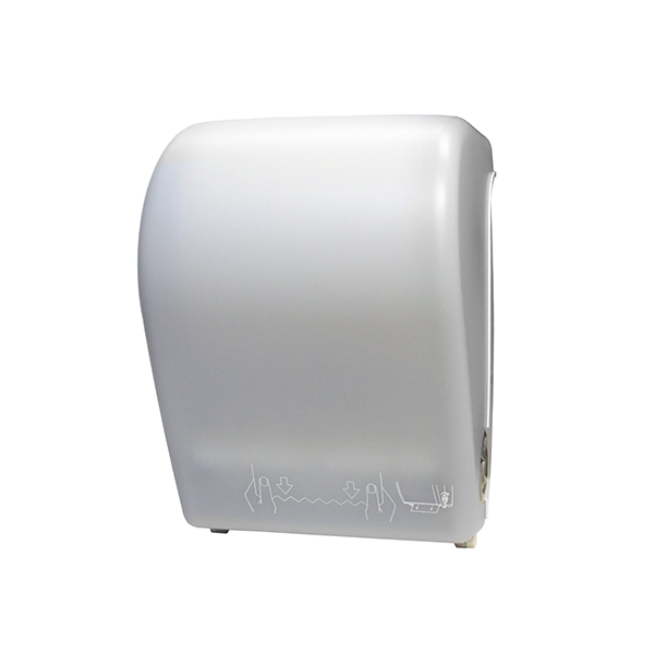 Provide a touch-free towel dispensing experience with our Clean Tek Professional White Plastic 8" Hands-Free Autocut Paper Towel Roll Dispenser. Crafted from top-notch ABS plastic, this bathroom roll dispenser is built to withstand heavy everyday usage. Boasting a motion sensor, this automatic hand towel dispenser offers a touchless experience, minimizing the spread of germs. The control panel of this touchless paper towel dispenser lets you adjust the towel length to three different sizes. This tissue paper dispenser precisely cuts sheets at a consistent length automatically, avoiding product wastage. The lock system ensures that the mountable paper towel roll dispenser remains tamperproof. With LED indicators, this tissue roll dispenser alerts you when the battery is low or when the napkins need to be refilled. This dispenser can be powered by either an AC or DC power supply using a power adaptor or four D-sized batteries. Measuring 12 inches long by 8.75 inches wide by 15.5 inches tall, this dispensing machine is compatible with our 6-inch paper towel rolls Power adapter and batteries are not included.