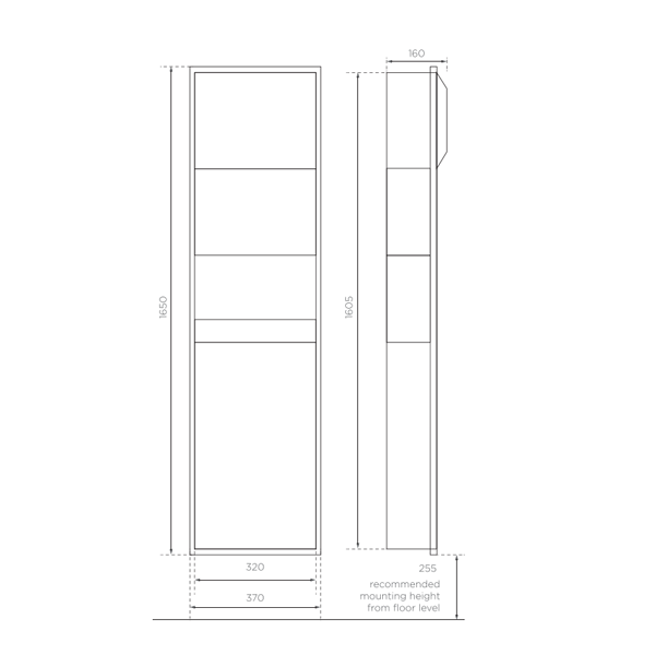 - requires the preparation of an appropriate opening in the wall (height / width / depth) 1610 x 330 x 160 mm